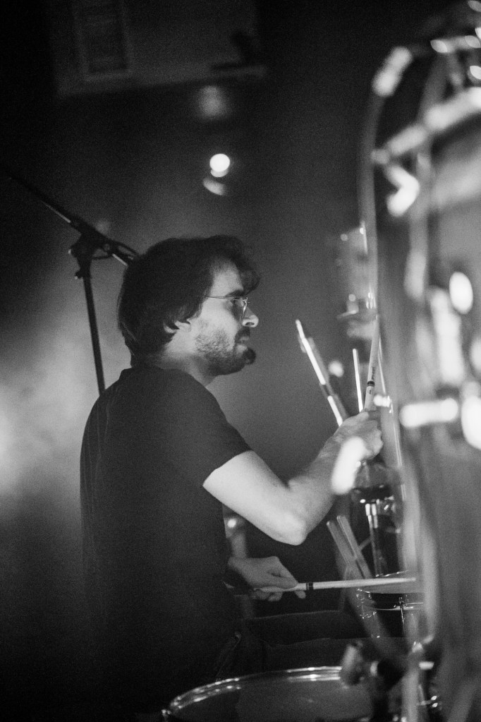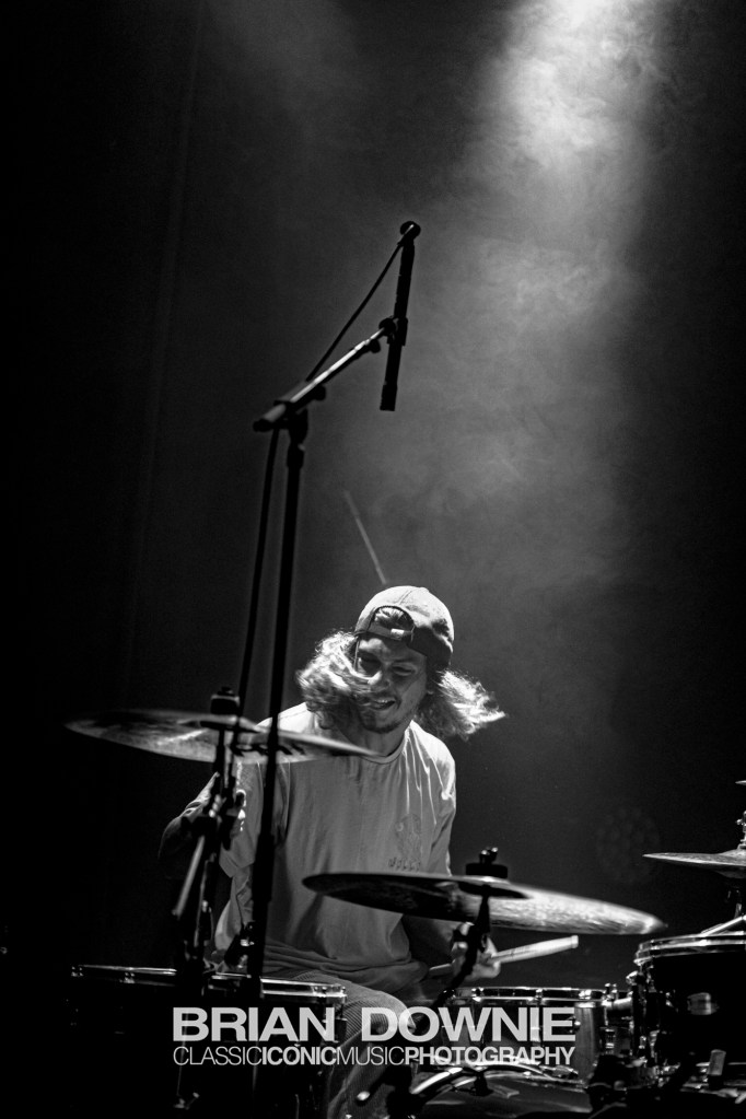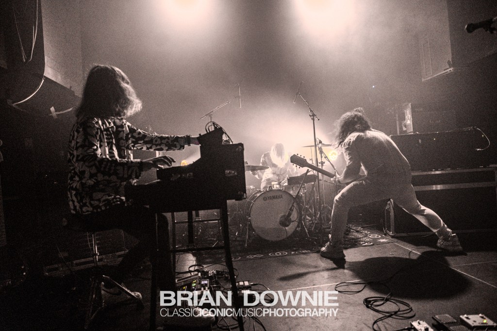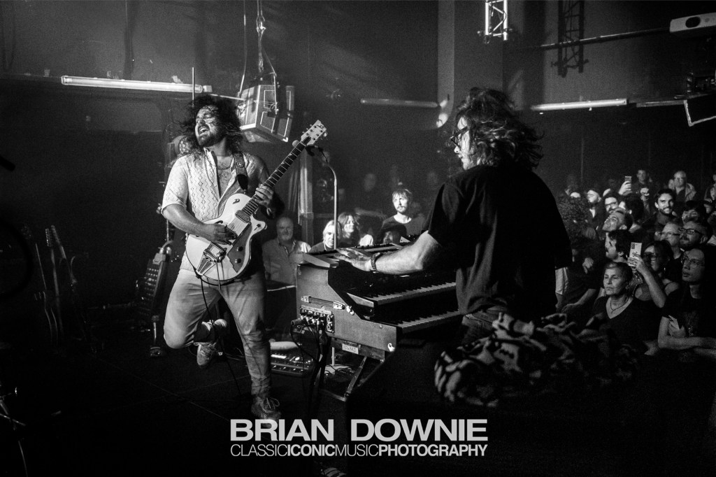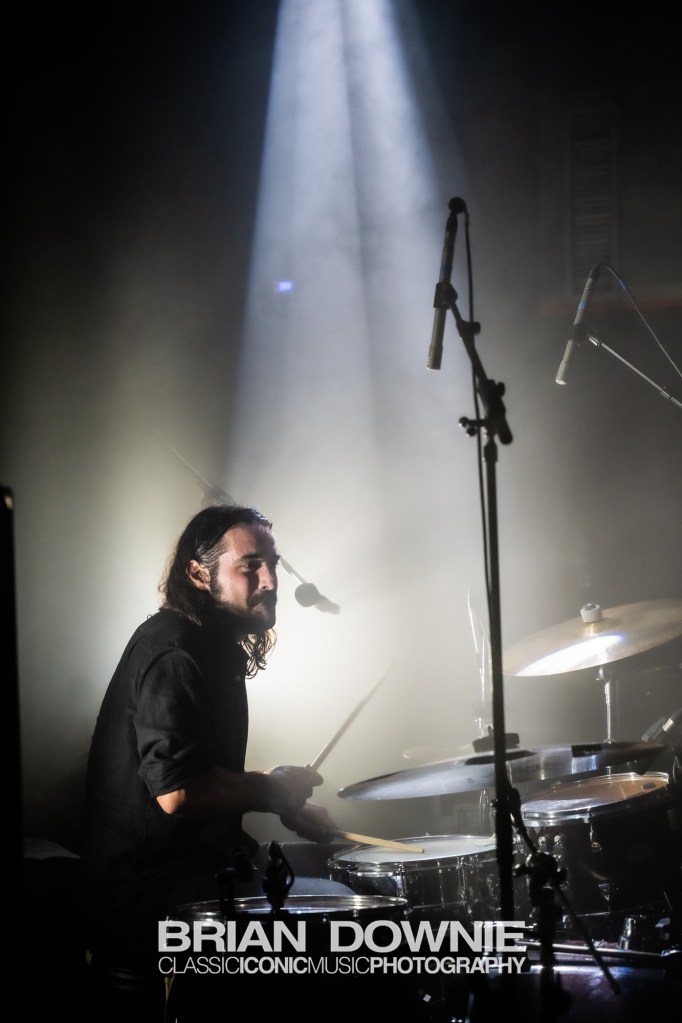 A couple of songs in, Void, from their debut album, was tonight, as usual, a high point of their set and a chance, if, impossibly you hadn’t already noticed, for “Hammond Organ / Synthesiser / Bass / Theremin player”, Raphäel Jeandenand to demonstrate exactly what he brings to the band. Whether it was the atmosphere, our imagination, or reality we’re not sure, but tonight his solo section in the second half of the song seemed to go on for an eternity, in the best possible way, just lifting, lifting, lifting the entire room. It felt historic. Tom Karren‘s drumming meanwhile has exactly the right combination of energy and groove to propel their music, his flute playing among the audience during Event Horizon becoming another anticipated moment of each show.