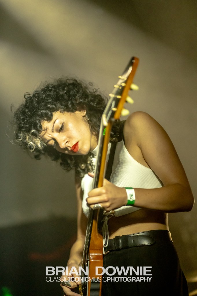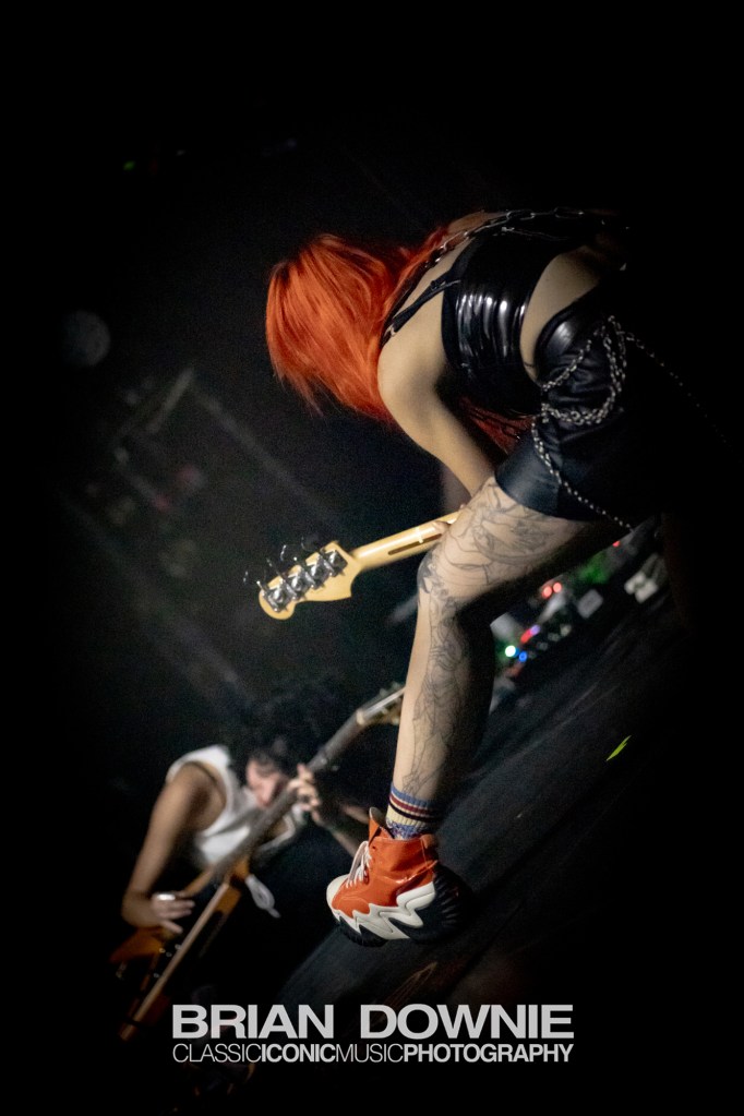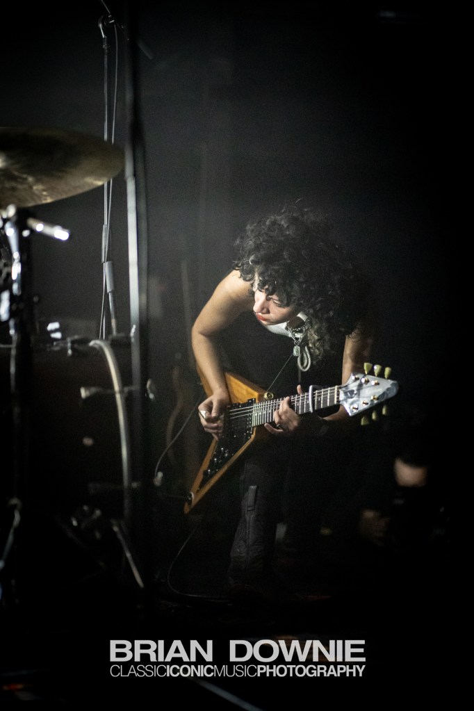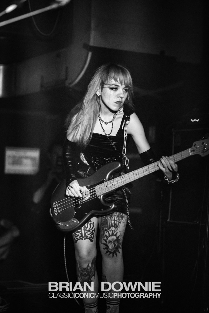 Drummer Edith Seguier‘s playing is something else, so perfectly placed within the music that it’s almost easy to overlook, but you simply cannot play music like this, with its varying tempos, time signatures and changes in energy, it’s complexity, without being exceptional at what you do. The same goes for guitarist Myriam El Moumni, clearly an educated and accomplished musician, her playing could easily fill the hands of two guitarists in any other band. Singer/bassist Eva Hägen arrives on the stage like such a badass that it’s impossible to not feel you are looking at another Siouxsie Sioux or Joan Jett at the beginning of their careers. There is no weak link in this band. They are all simply astonishing good at what they do, and they seem to gel together perfectly.