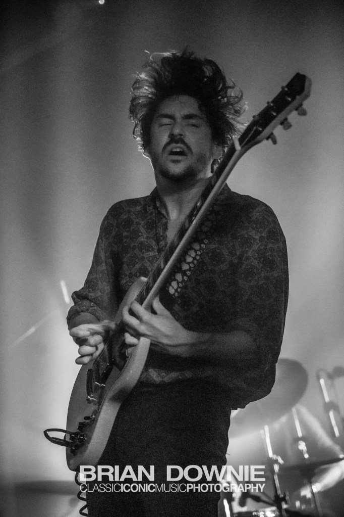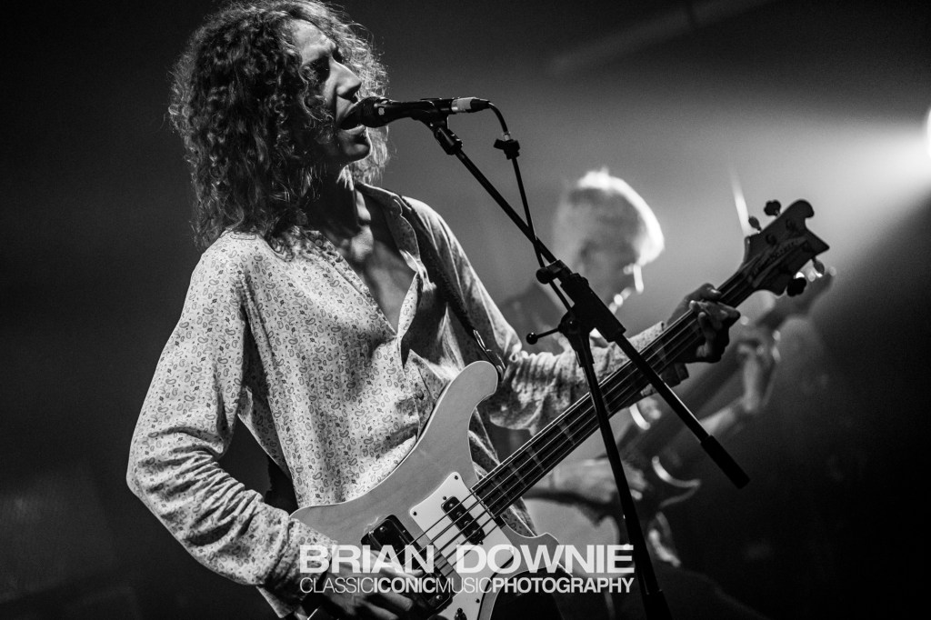 Liquid Bear are a band we had only just gotten around to checking out just over a week before the gig, so naturally this was the first time we had ever seen them live. Whether it was a case of timing – the band were on stage first – or if it was simply that there are a lot of people who won’t make the effort to go check out the ‘first band’ on a bill, we don’t know, but the Petit Bain was probably only about one quarter full by the time the band began their set. However, what we do know is this : Liquid Bear are incredible. There is just so much going on with their sound. Not only do they have one of the most charismatic frontmen we’ve seen in a while in Kostia Yordanoff, but next to him, Ilya Franciosi was, for at least some of the set (if not all, we hadn’t noticed to be truthful) playing fretless guitar in the most sublime manner, something that suddenly explained the dreaminess of their sound. Adrien Rouyer on drums and keyboard player Gaspard Kremer complete this faultless four-piece (interestingly the only band of the night with more than three members). The songs are progressive, deep and layered, but also memorable in the way that a lot of progressive music isn’t, and their sound, their look, it is all there as well. But these are early days, relatively speaking, for Liquid Bear and if they continue to evolve and progress on this path they have stepped onto then there are going to be some incredible things coming from this band in the future.