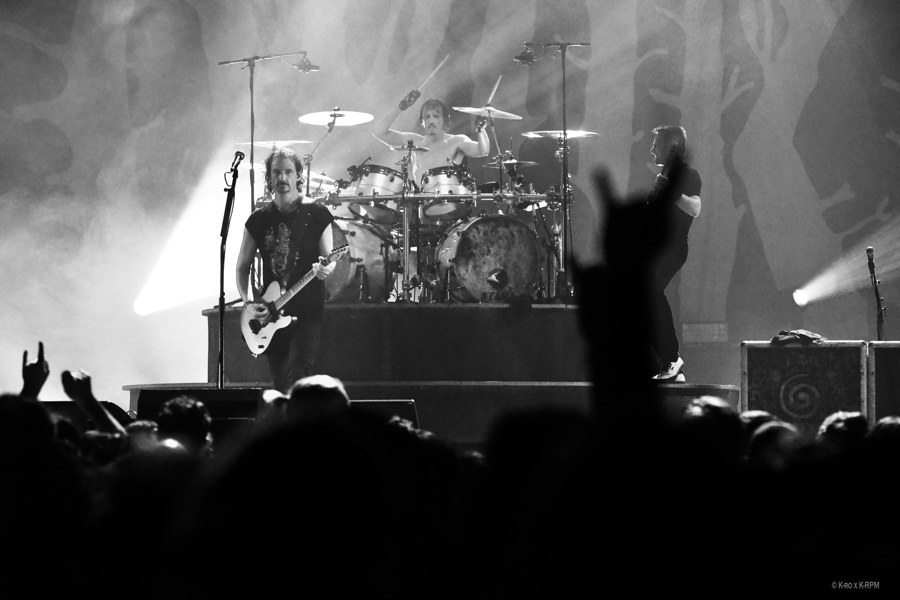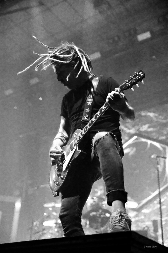 Puis vient le tour de GOJIRA, pour son seul spectacle français cette année avant une tournée américaine avec Korn à l’automne et l’écriture d’un nouvel album en cours. Les fumigènes démarrent et c’est parti pour un set de plus d’une heure trente qui va enflammer la salle. Les têtes et les corps s’agitent, la sueur perle, quelques bières volent et beaucoup de slameurs se lancent, c’est bien un concert métal dans toute sa splendeur et aucunement raccourci pour un festival. Les frères Duplantier toujours aussi impressionnants techniquement vont jusqu’à échanger leurs instruments le temps d’une chanson, soutenus par leurs acolytes Christian et Jean-Michel qui prennent un plaisir non feint ce soir, avec quelques mots à la fin de Jean-Michel le basque régional de l’étape. Un vrai bon concert de Gojira, sans les accompagnements vidéos des stades mais avec du cœur, des sourires et de belles étincelles !