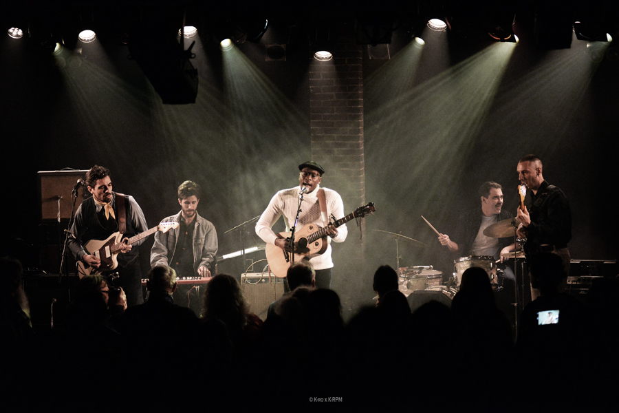 Et la musique me direz vous ? Et bien on est sur du blues feel good, d’ailleurs plus soul -folk, du genre qui donne le sourire, le sien étant communicatif. Le genre qu’on peut écouter le matin en partant pour le travail pour passer une belle journée. Accompagné ce soir-là sur scène par un groupe parisien quelque peut improvisé autour de son tour manager Max Genouel (également membre des Lowland Brothers qu’on vous présentera bientôt!) en quelques jours à peine (et une unique repet le matin même!) pour ce dernier concert français.