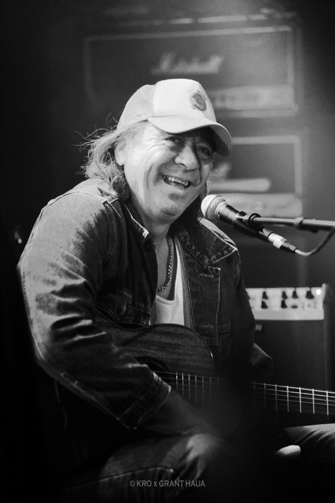 Il y a deux ans on avait démarré avec une conférence passionnante sur l’agroécologie par Marc Dufumier. Cette fois-ci on revient au musical, au blues roots, à la voix grave parfaitement alignée, à ce blues envoutant et magique qui nous transporte directement dans le bayou américain. Et pourtant c’est un imposant néo-zélandais qui se trouve seul en scène, j’ai nommé Grant Haua. Qui en plus nous fait l’honneur d’un français certes un peu balbutiant, « petit » comme il dit, mais néanmoins très sincère pour nous introduire ses chansons. Un vrai bon moment pour une première partie de qualité qu’on aimerait revoir en tête d’affiche.