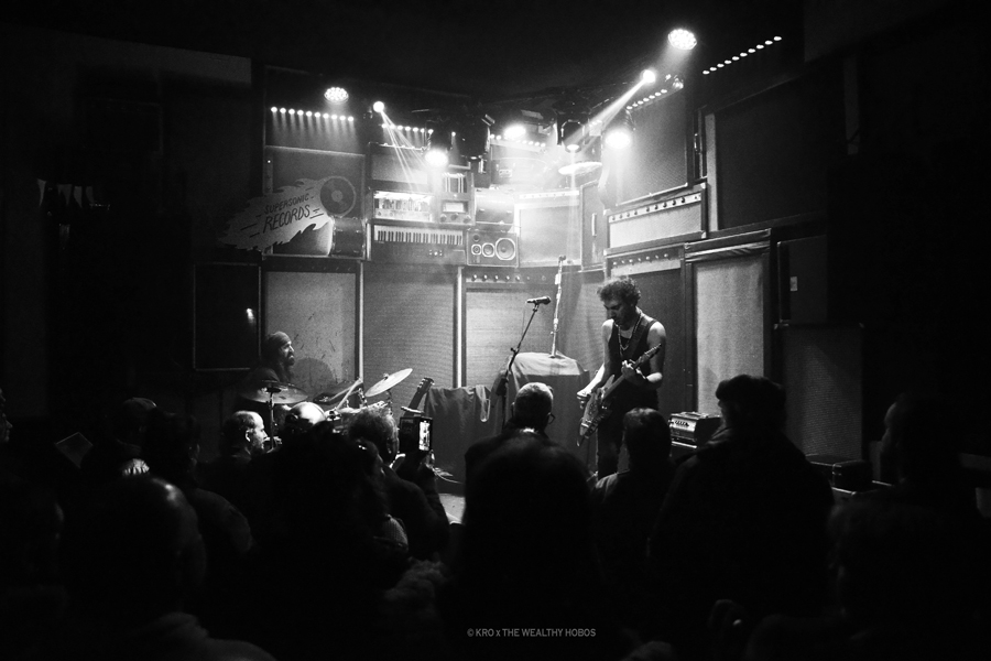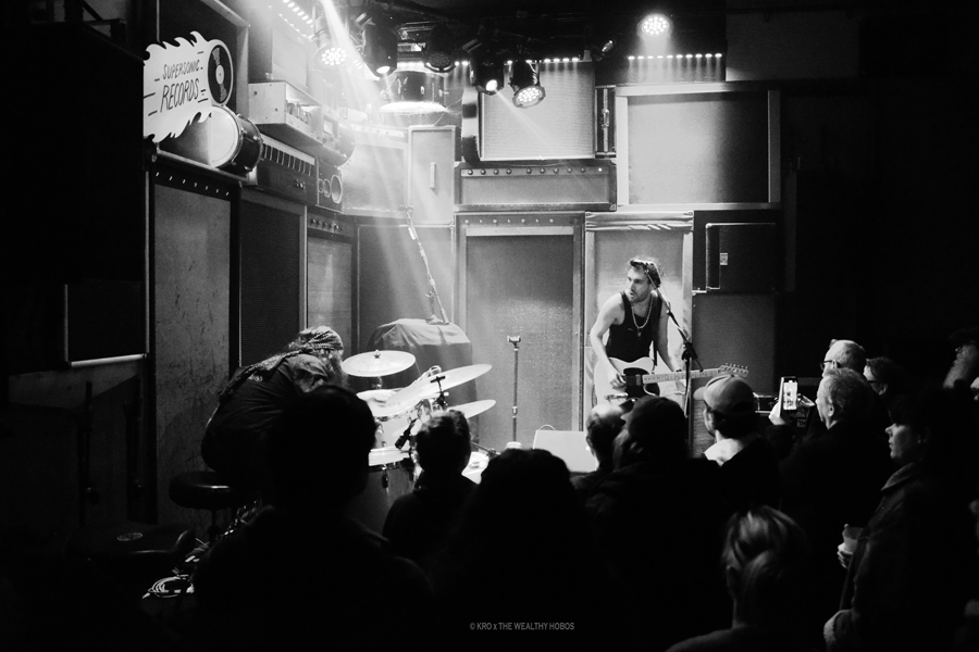 The Wealthy Hobos ne débarque pas tout à fait de nulle part puisqu’ils parcourent les scènes parisiennes depuis déjà 2014, même du temps de l’ancêtre du Supersonic, l’OPA. Line-up à géométrie variable selon les dates, avec parfois l’ajout d’une basse ou d’un saxophone, ils sont néanmoins très efficaces à deux, guitare / batterie. Leur mojo ? « Se faire kiffer » et accessoirement le public avec.