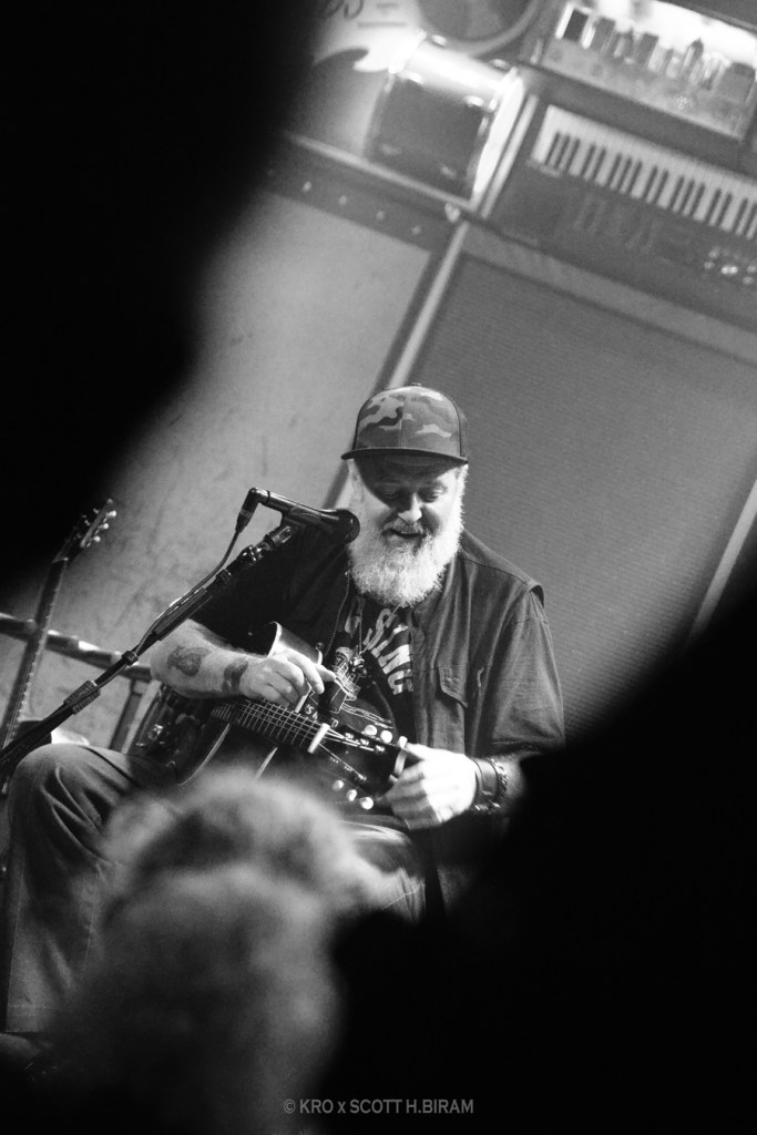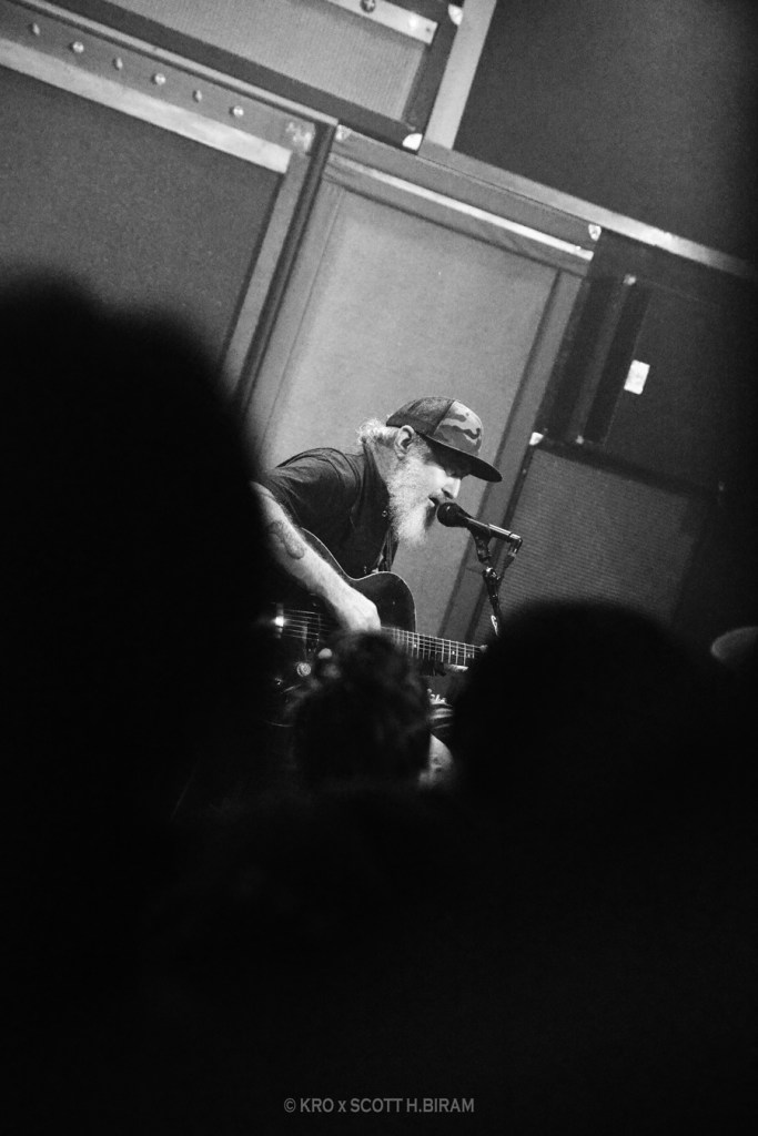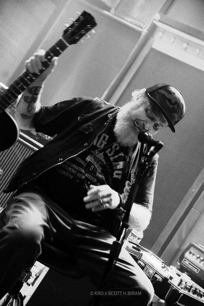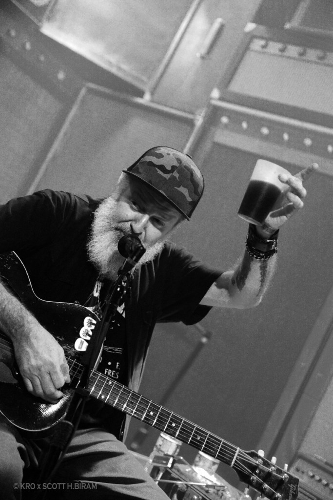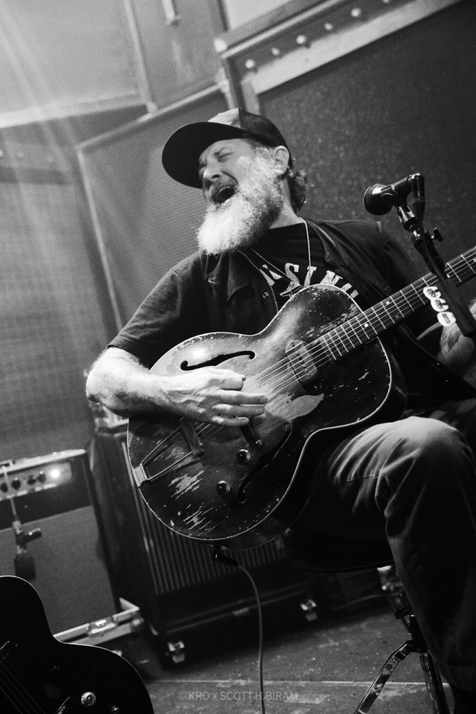 Belle introduction à Scott H.Biram, Texan lui-même un peu hobo à débarquer sur scène avec la bouteille de vin et sans setlist, à l’ancienne et au talent du bon vieux bluesman. D’ailleurs il se nomme lui-même The Dirty Old One Man Band, ce qui représente bien le projet. Pas avare de commentaires, en se rappelant notamment les salles parisiennes dans lesquelles il a déjà eu l’occasion de jouer ces 20 dernières années (et moi je suis donc très en retard sur cette « découverte »). Le bonhomme est visiblement ravi d’être là, et délivre un blues « comme là-bas », simple, efficace et qualitatif. Du bon blues classique, peut-être sans setlist mais clairement pas sans talent, c’est bien ce qu’il fallait pour un lundi soir pluvieux. On vous en recommande donc fortement l’écoute !