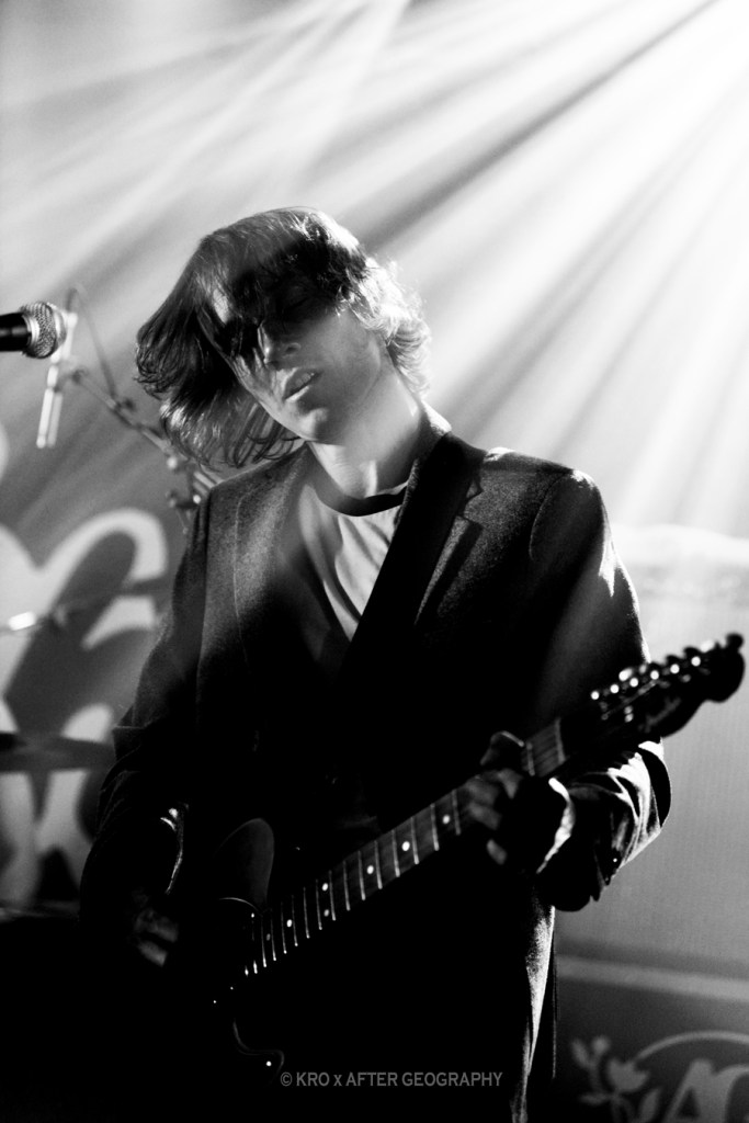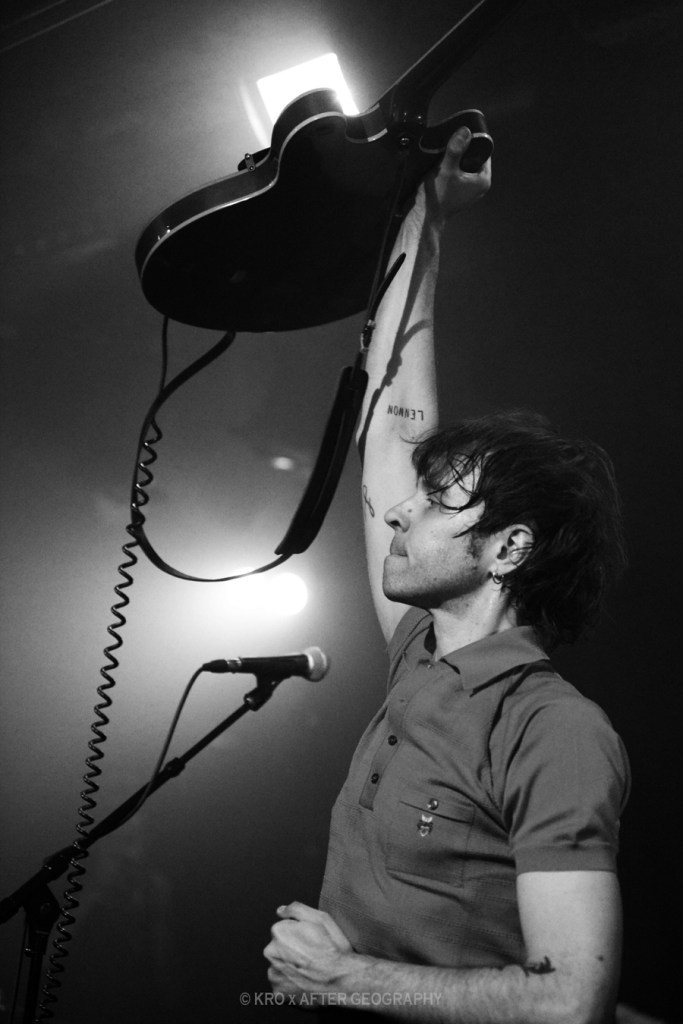 Et c’est pour une soirée en co-plateau qu’on débarque à La Maroquinerie, pour commencer la soirée avec les After Geography. Bien que basés à Lyon, ils commencent à avoir plus que leurs entrées sur les scènes parisiennes, faisant tout juste suite à la première partie de rien de moins que Miles Kane au Trianon la semaine précédente par exemple. Leur pop joyeuse et réconfortante, très beatlesienne, met des sourires sur les visages, que ce soit sur scène ou dans le public. Une petite heure de show plus tard, le public est conquis et l’album A Hundred Mixed Emotions égaillera sans nul doute vos oreilles !