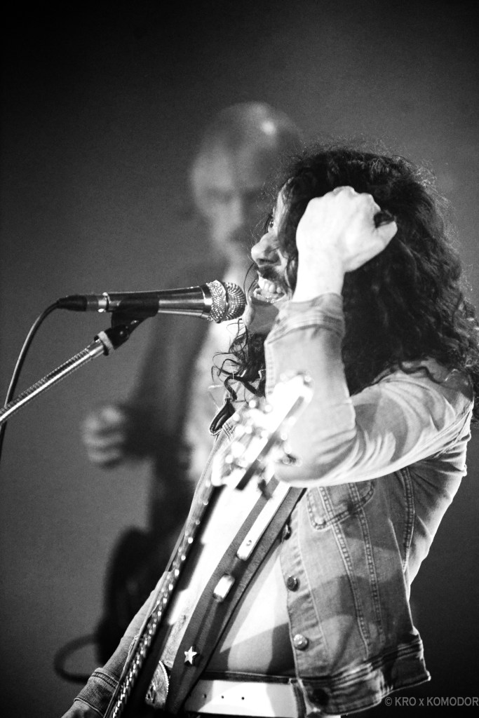 Place ensuite aux gars de Komodor, là aussi pour une grosse heure de live qui semblera bien trop courte. L’album Time & Space est effectivement une capsule spatio-temporelle vers un rock un peu glam et résolument 70’s, moultes inspirations de Bowie a Nazareth en passant par Sweet. De jolies harmonies de voix avec de bonnes grosses guitares et une rythmique solide, pas à dire, on aime l’album.
